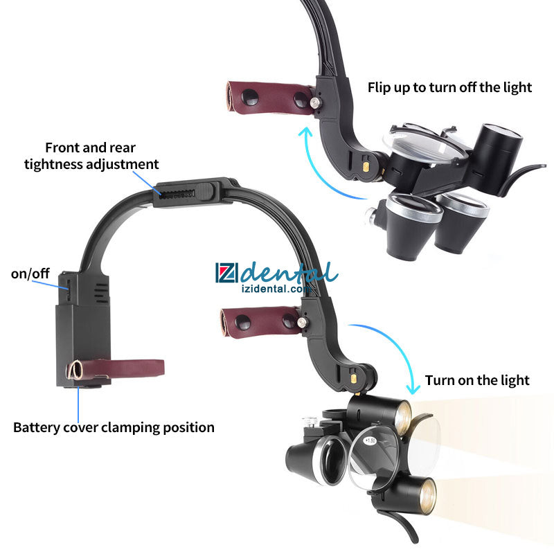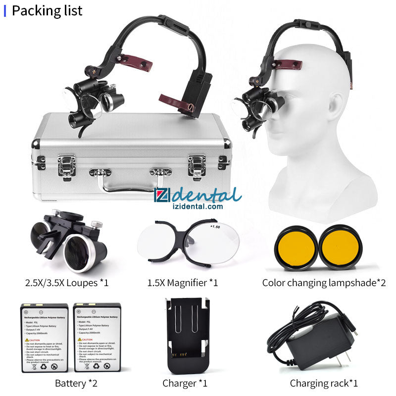 2.5/3.5X Dental Binocular Loupes with Presbyopic Glassest + 5W LED Headlight