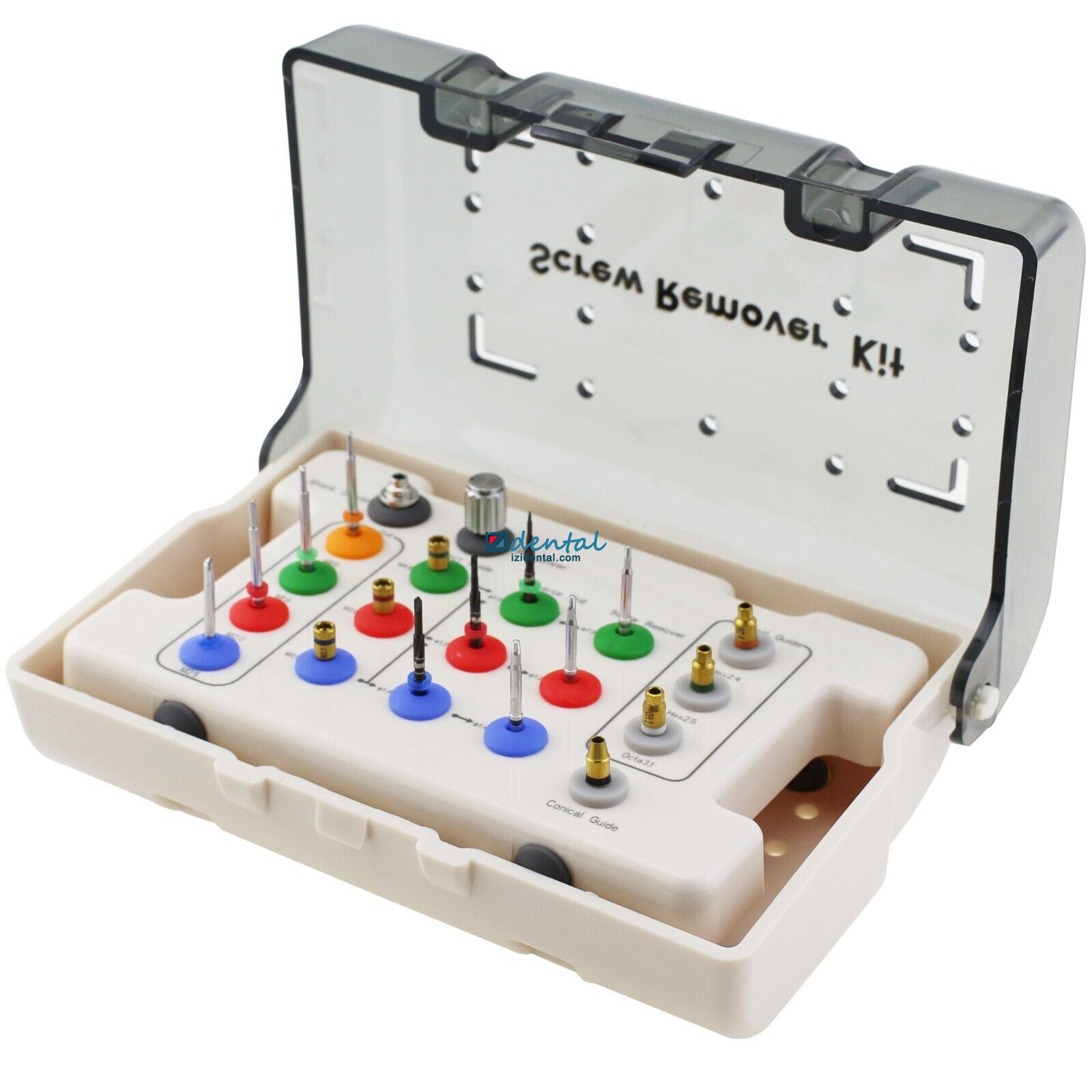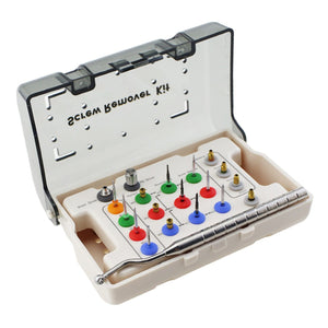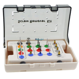 The Screw Remover Kit is a surgical tool developed to safely and quickly remove screws that have become fractured inside an implanted fixture for various reasons. After removing the screw, a new abutment may be connected to the fixture.
