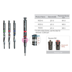 - This device removes a fractured screw. Insert a Screw Remover that is appropriate for the size of the hole formed using the Reverse Drill and rotate it at a low speed (at or below 80 rpm) in the reverse direction.