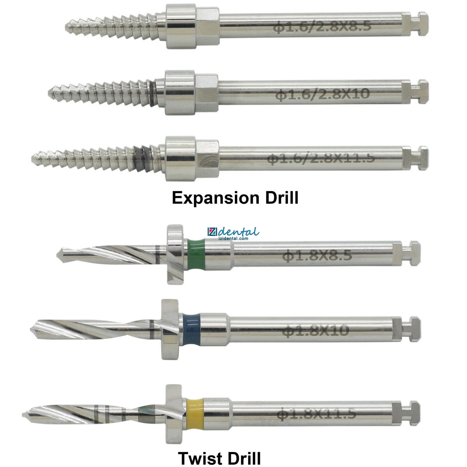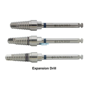 The expansion drill expands the split bone by self-tapping and lowers the risk of bone fracture.