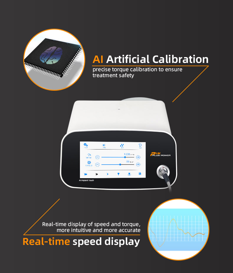 · Our dental implant device uses 360° visibility HD non-reflective LCD touch screen. Freely programmable to meet a variety of user needs.