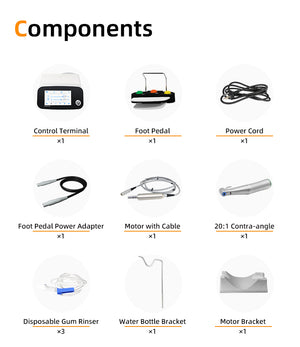 · The dental implant device uses German bearing ensuring extremely stable torque output and silent treatment experience.