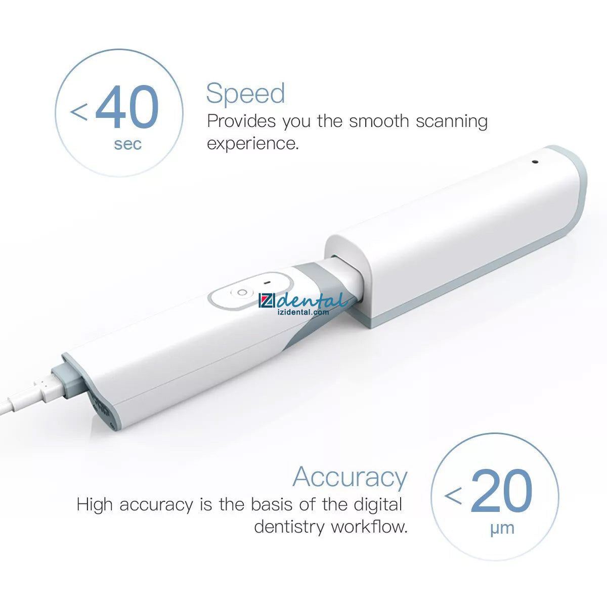 - High Accuracy and Speed: Provides precise scanning with an accuracy of <20μm and completes scans in under 40 seconds, enhancing efficiency in digital dentistry workflows.