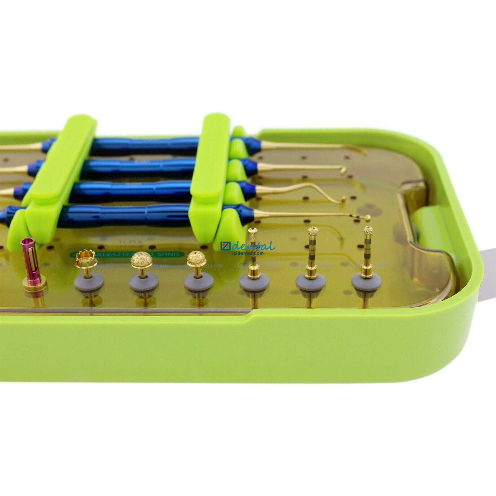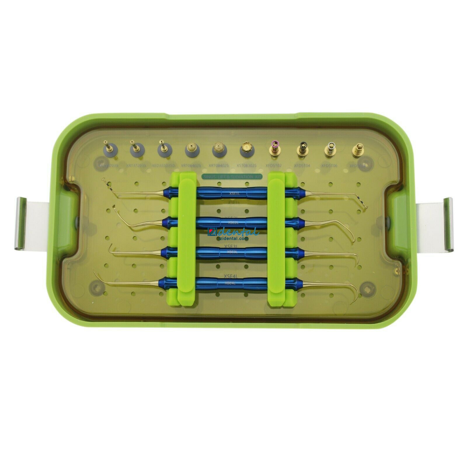 The DASK kit contains 3 drills for the lateral approach, 3 drills for the crestal approach, 4 drill stoppers, and 4 sinus hand instruments.