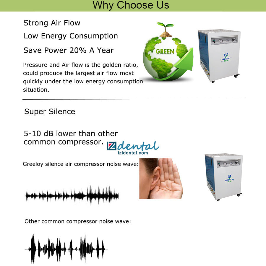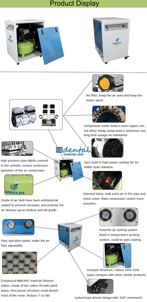 Greeloy GA-61X Oil-Free Mini Dental Air Compressor With Silent Cabinet