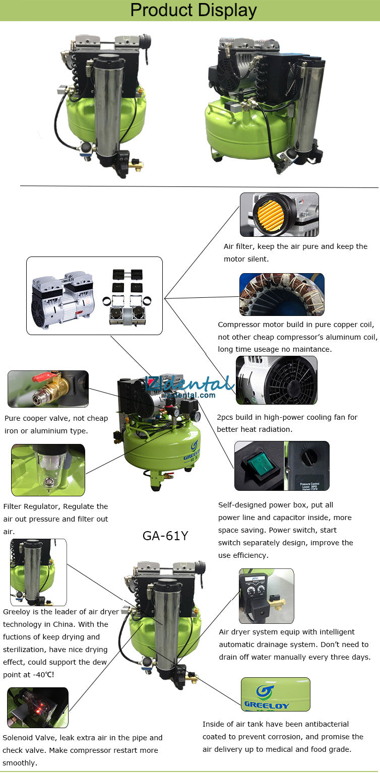 Greeloy GA-61Y Oil Mini Oil-free Dental Air Compressor With Drier