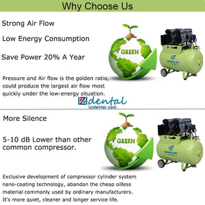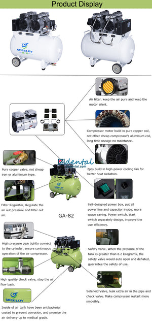 Greeloy GA-82 2HP Oilless Dental Air Compressor Double Motor