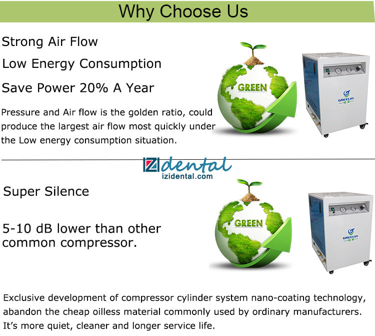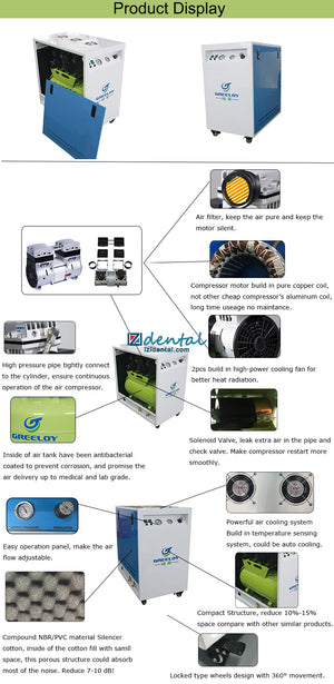 Greeloy GA-82X 1600W Oilless Dental Air Compressor With Silent Cabinet