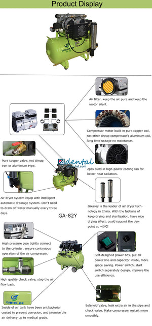 Greeloy GA-82Y 2HP Dental Oilless Air Compressor With Drier