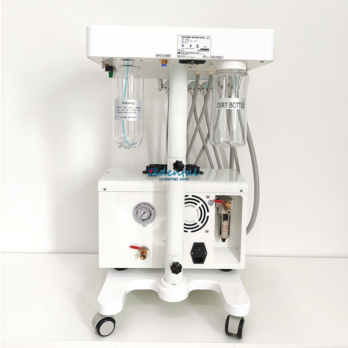 • It is lightweight and easy to move. It can be used with an external air supply system, or there is an option for a portable dental air compressor.