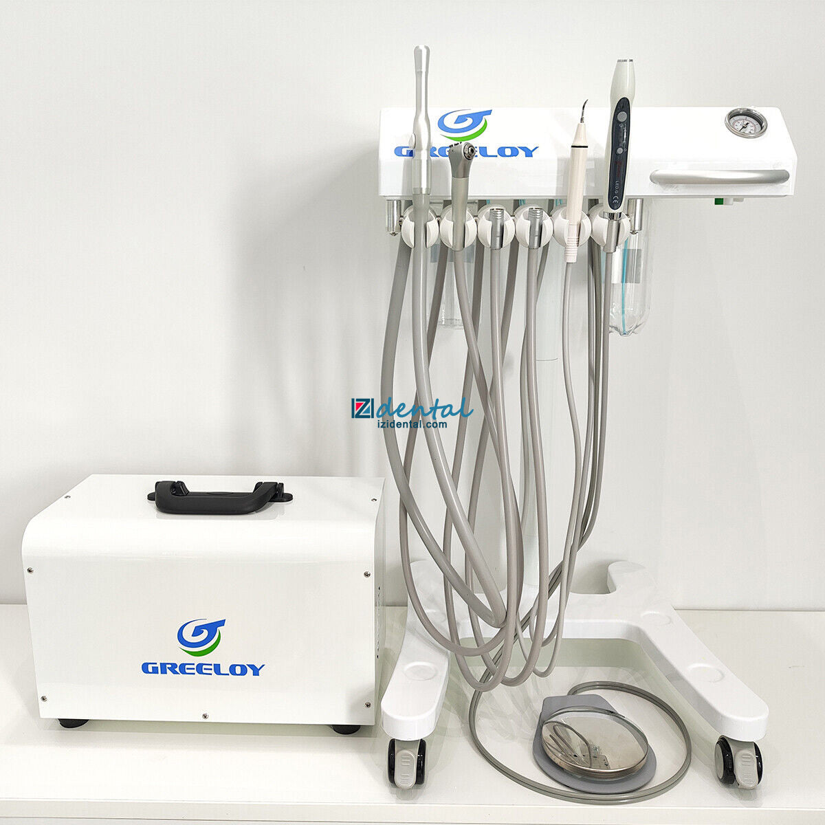 Greeloy Mobile Dental Delivery Unit GU-P302 + Dental Compressor GU-P300 + Curing Light+ Ultrasonic Scaler