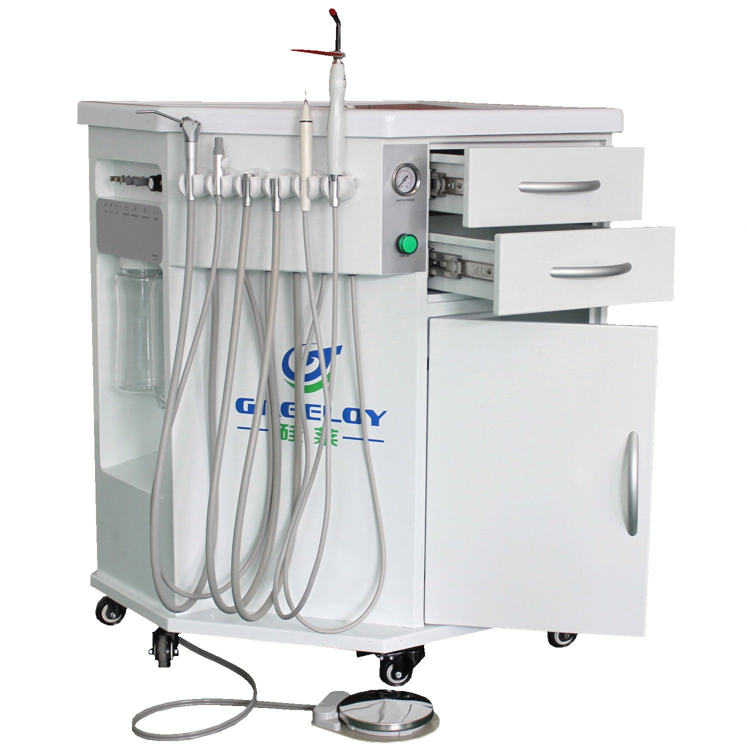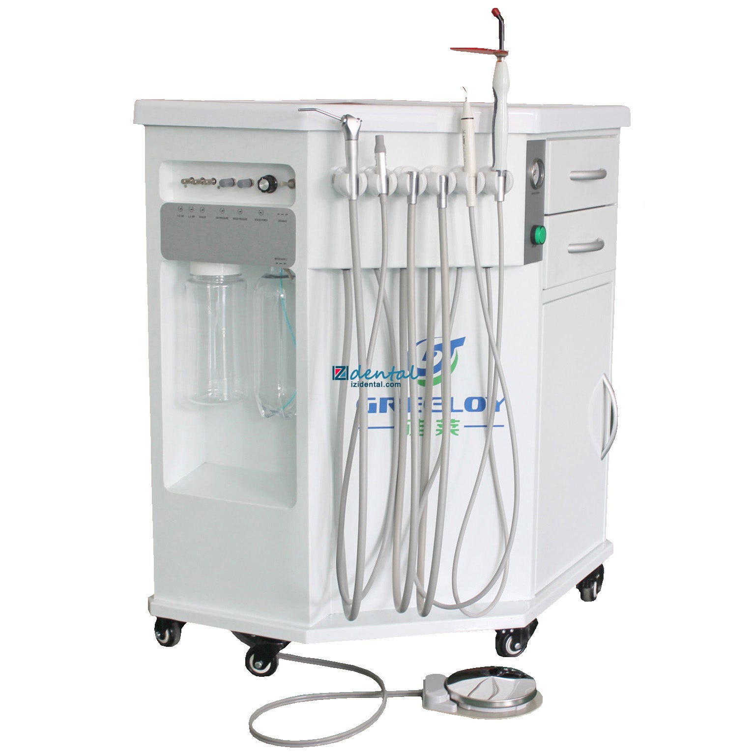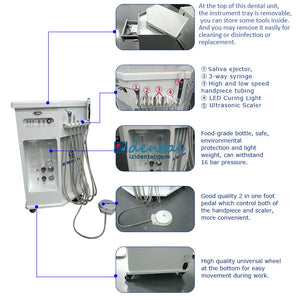 GREELOY P212 Dental Delivery Unit Mobile Dental Cabinets With Compressor + Curing Light + Scaler