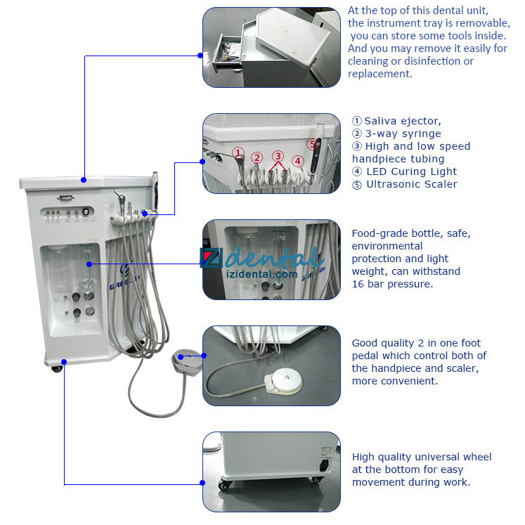 (GU-P212 and GU-P211 are same style products. GU-P211 doesn't have built-in scaler and dental curing light. GU-P212 is with built-in scaler and dental curing light.)