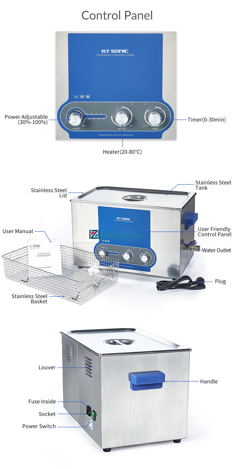 GT SONIC P-Series Power Adjustment Ultrasonic Cleaner 2-27L 100-500W with Heating Function
