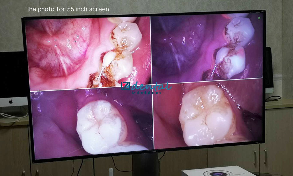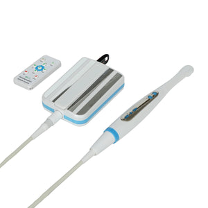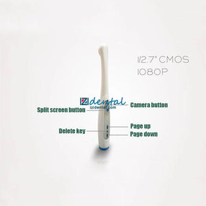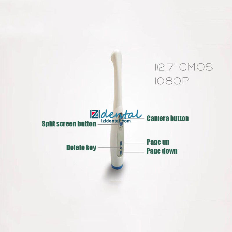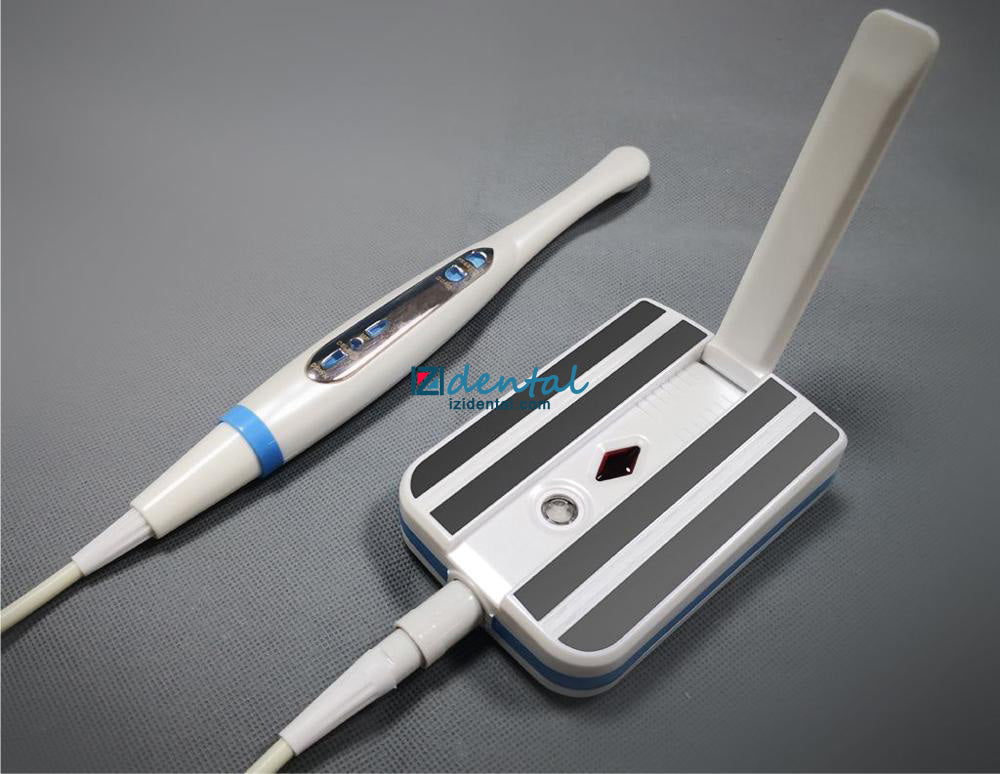 Camera handpiece with blue and white light; blue light can check for decay, dental calculus, and plaque.