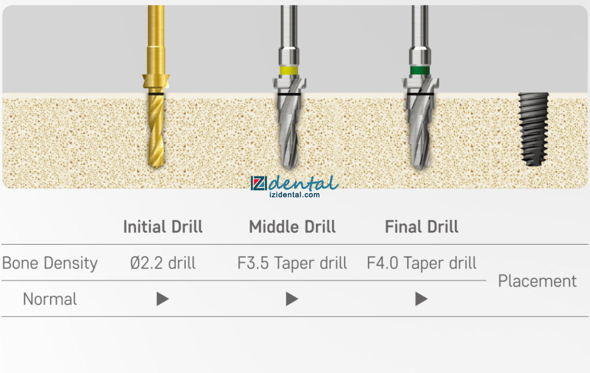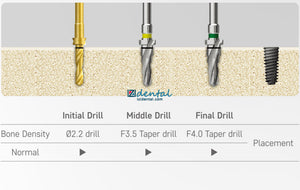 Fixture can be placed with 3 drillings in Normal bone for shorter chair times.