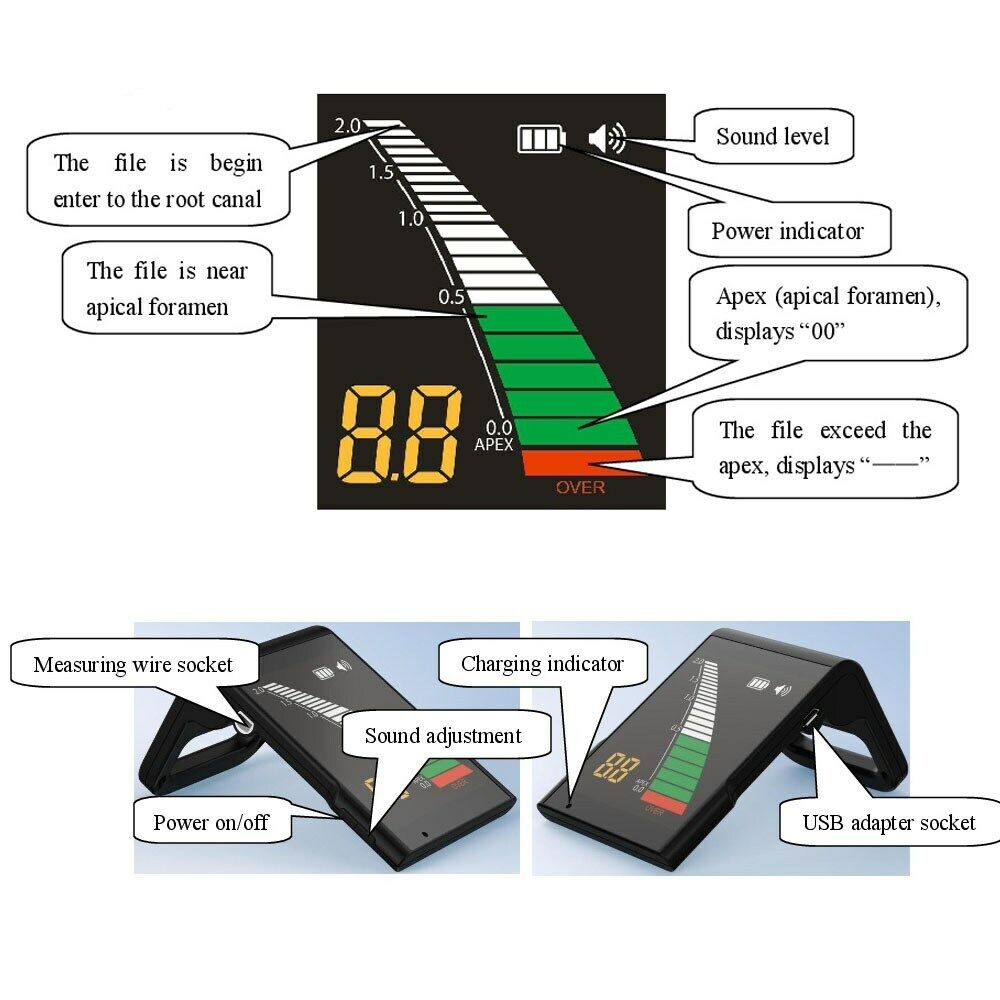 Buzzer alert: The buzzer will alert when the file is less than 2mm closed to the apex.
