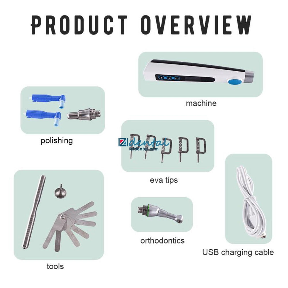 Two functional heads: one for polishing, one for orthodontics.
