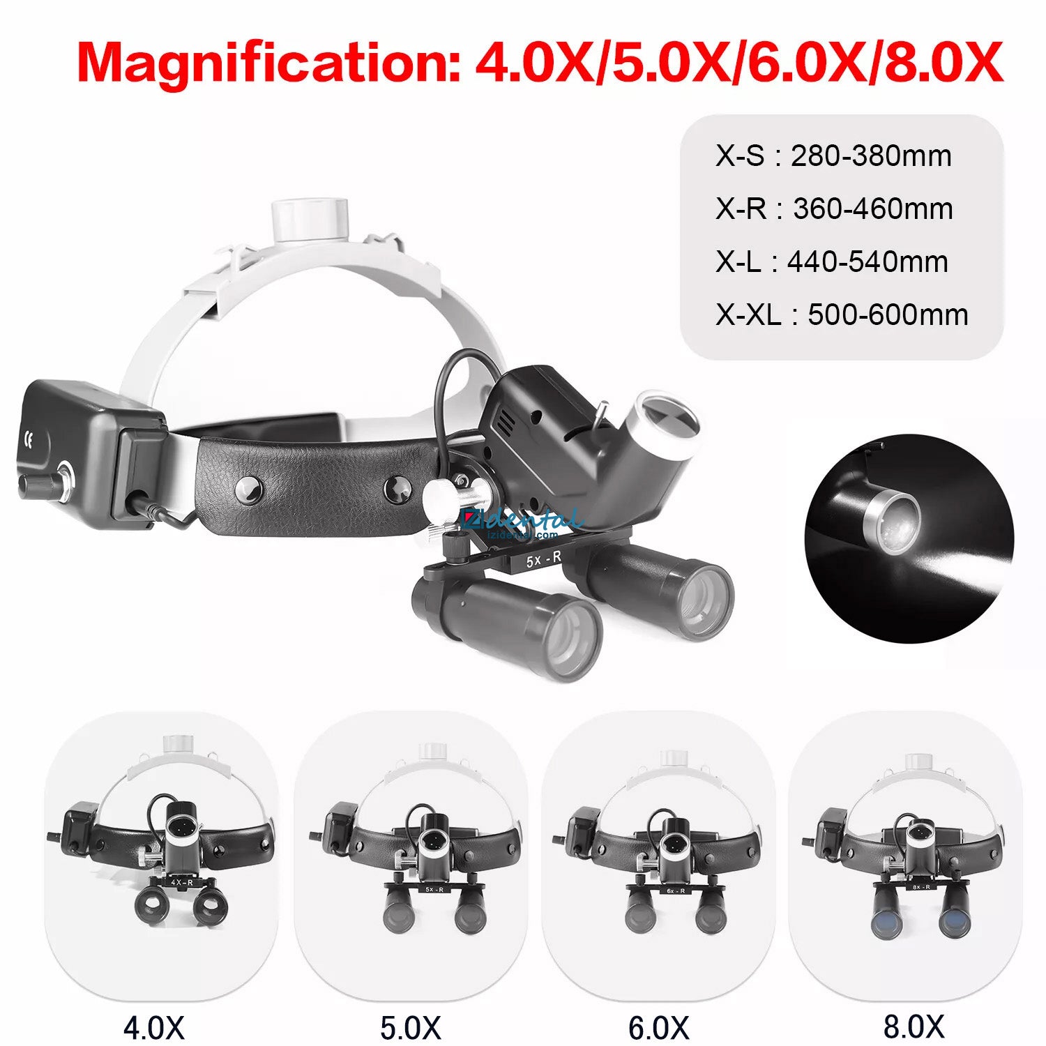 YUYO 4.0X/5.0X/6.0X/8.0X-R Dental Loupe + 5W LED Headband Headlight