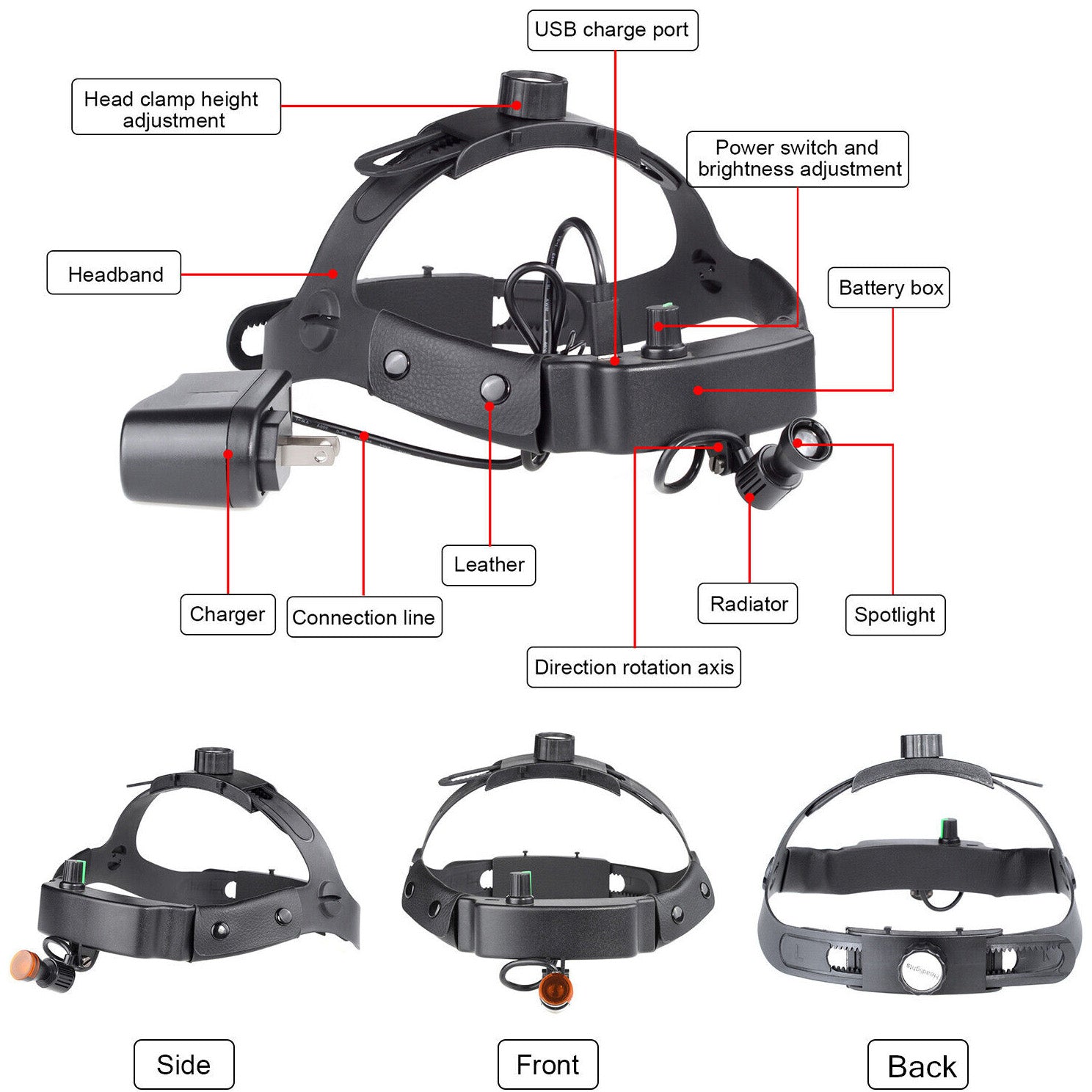 1. Stepless adjustment of brightness, high focus lighting, can work for 4 hours under the maximum brightness.